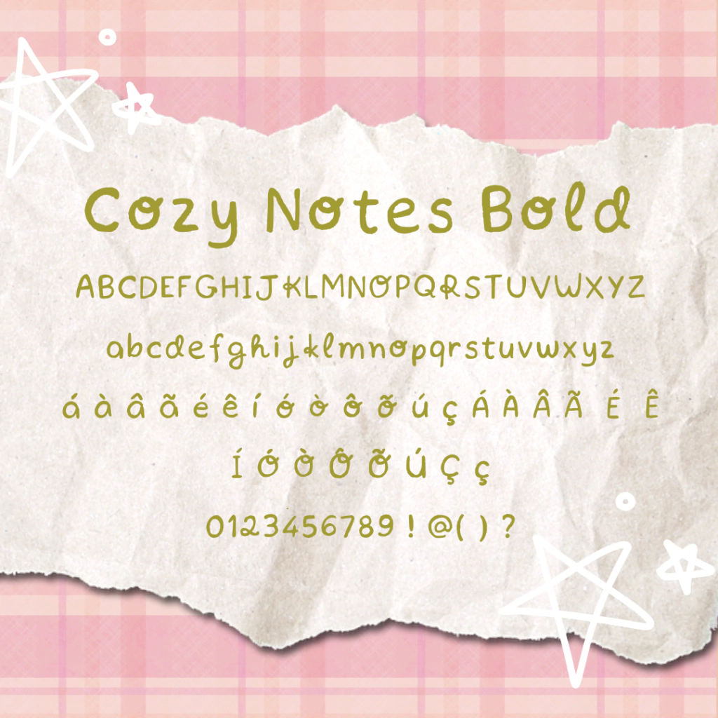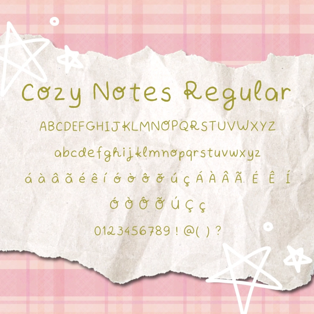 Essa é uma fonte autoral, desenhada à mão, com aquele charme artesanal que lembra journaling, scrapbooking e trabalhos feitos com cuidado e carinho.