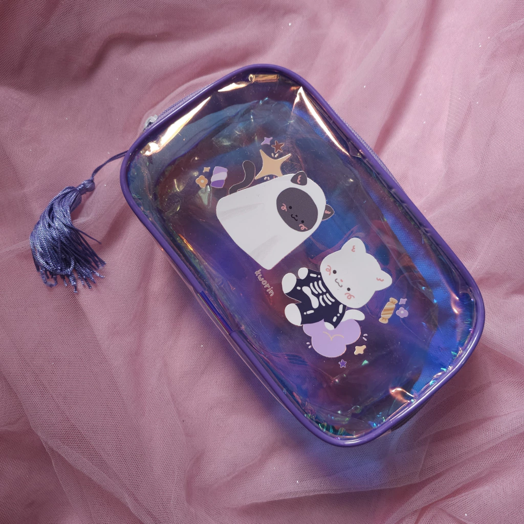 ✦ 1 estojo holográfico (22x13x7cm, com zíper e estampa em um lado)